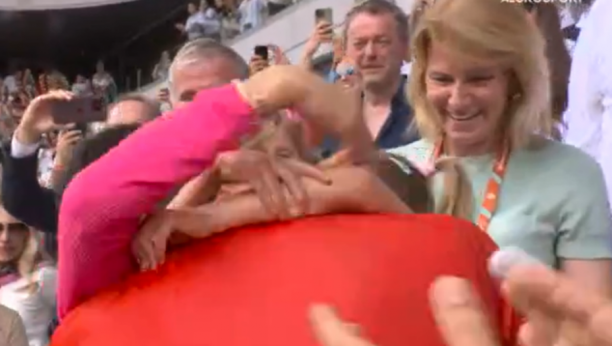 Novak nije hteo da krije emocije, slavio je sa timom, a onda je izgrlio celu porodicu.