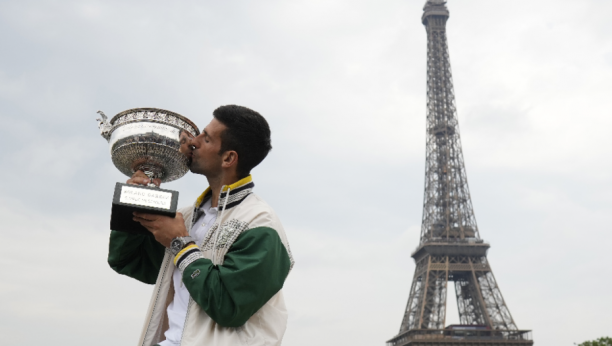 Novak Đoković je pozirao kod Ajfelove kule. Srbin nije skidao osmeh sa lica, dok je držao pehar namenjen šampionu.