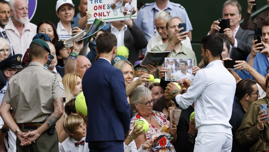 - Ne mogu sada da ti dam reket, sačekajte me momenat, mogu da vam dam nešto drugo - rekao je Đoković dok je potpisivao brojne suvenire gledaocima, a onda je otišao do torbe sa svojom opremom.