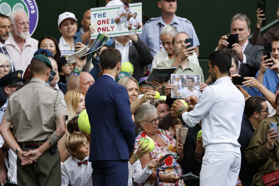 Veliki broj navijača je čekao da im se Novak potpiše na majice, loptice, papire... Oni namlađi su prednjačili, a grupica dečaka je molila Novaka da im da reket.