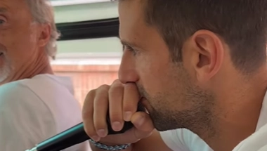 Na putu za trening, u "četvorotočkašu" koji prevozi do terena Nole je silno zabavio suprugu Jelenu i članove "stafa" Miljana Amanovića, Marka Panikija i Karlosa Gomeza.