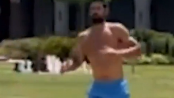 Na snimku se vidi kako Novak go do pojasa vežba u vrtu, a u centru pažnje su mišići i brada koja je privukla pažnju navijača širom sveta.