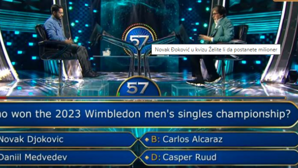 - Ko je osvojio Vimbldon 2023. godine? - glasilo je pitanje u kvizu za koje je nagrada bila nešto preko 100.000 dinara, a takmičar je znao tačan odgovor i nastavio je svoj put ka milionskoj cifri.
