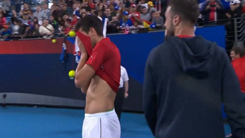 A onda su usledile neke scene koje je zaista uživanje bilo gledati. Jedna od njih je i ona u kojoj Nole uzima srpsku zastavu i zajedno sa ostatkom ekipe peva dobro poznatu pesmu.
