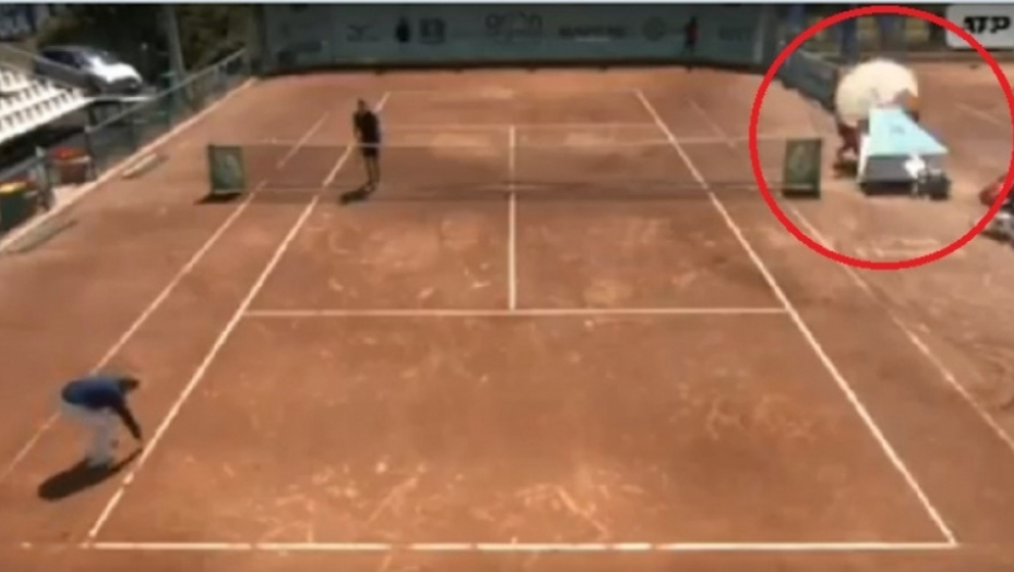Naime, sudija je sišao iz stolice da pogleda jedan trag loptice, a u tom trenutku, vetar je oborio njegovu konstrukciju u kojoj inače sedi.