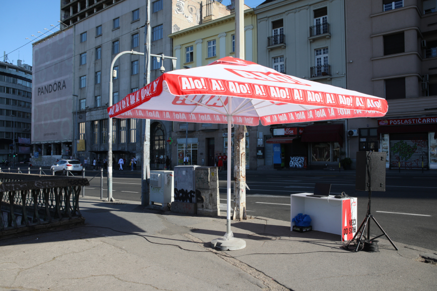 Jovan i tata Dario, koji je već nekoliko puta trčao polumaraton, ove godine bodrili su njihovu pobednicu, čekajući je kod Alo! štanda na Zelenom vencu s posebnim transparentom.