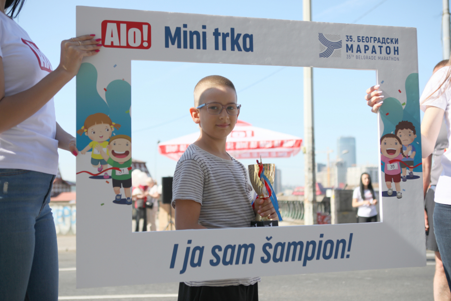 Jedan dečak privukao je posebnu pažnju. Reč je o Jovanu Ćiriću koji je istrčao Alo! Mini-trku, ali i dočekao svoju heroinu - mamu Ivanu koja je uspešno prevalila trasu polumaratona.