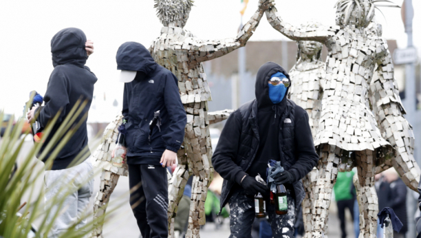 Policija je saopštila da nema povređenih i apelovala je na smirivanje situacije. "Naši policajci bili su napadnuti benzinskim bombama u Kreganu i drugim predmetima bačenim na njihova vozila, dok su prisustvovali nenajavljenoj uskršnjoj paradi", navela je policija.
