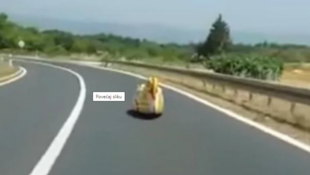 'On se vozi u kanti za smeće' - bio je samo jedan od niza duhovitih komentara nakon što je na Facebook stranici 'Prometne zgode i nezgode' u nedelju na putu u Posedarju kod Zadra objavljen video zapis 'neobičnog prometala' koga su snimali vozači iz automobila.