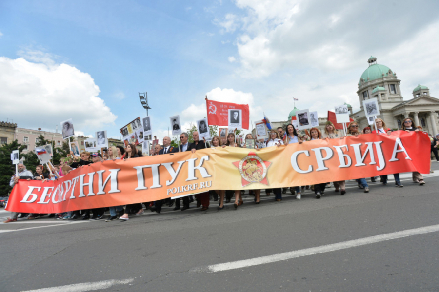 "Danas se maršom 'Besmrtnog puka' sećamo svih onih hrabrih boraca, naših predaka koji su poginuli, dali svoje živote kako bi danas Evropa bila slobodna. Sećamo se i miliona drugih žrtava koje su poginule u borbi protiv najvećeg zla u istoriji čovečanstva, a to je fašizam", kaže Vesić.