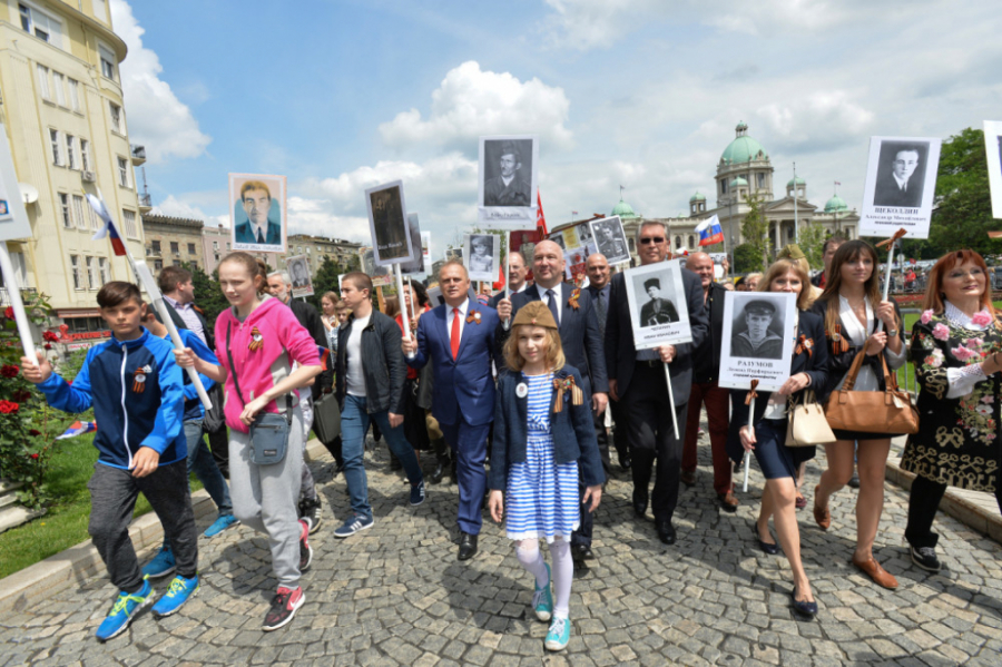 U okviru manifestacije, koju je ove godine podržao Grad Beograd, amabasador Rusije Aleksandar Čepurin, gradski menadžer Vesić i predstavnik Organizacionog odbora Besmrtnog puka Nenad Popović, položili vence na Groblju oslobodilaca Beograda, nakon čega je krenuo marš "Besmrtnog puka" do platoa ispred Skupštine grada gde je održan svečani koncert.