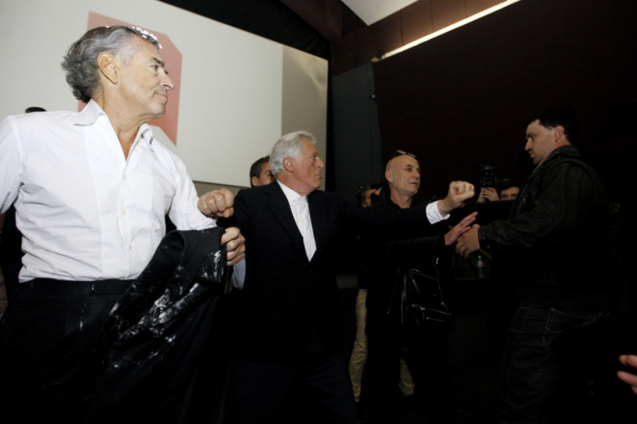 Publika je izvela mladiće iz sale, iz povike "Ko ste vi da prekidate kulturni događaj u sred Beograda".