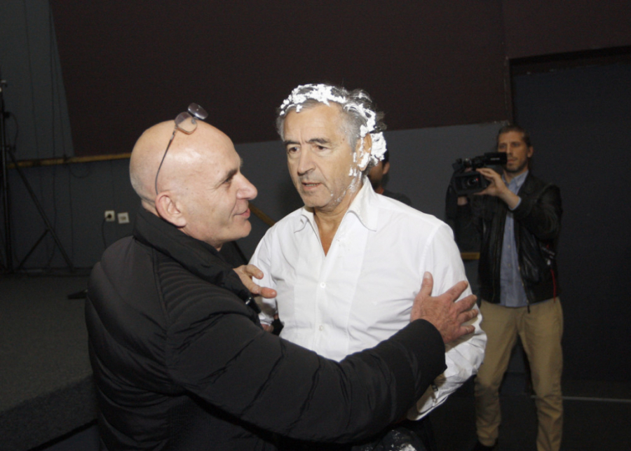 Kontroverzni francuski filozof je dobio parče torte u lice nekoliko sekundi nakon što je počeo da govori publici koja je videla film.