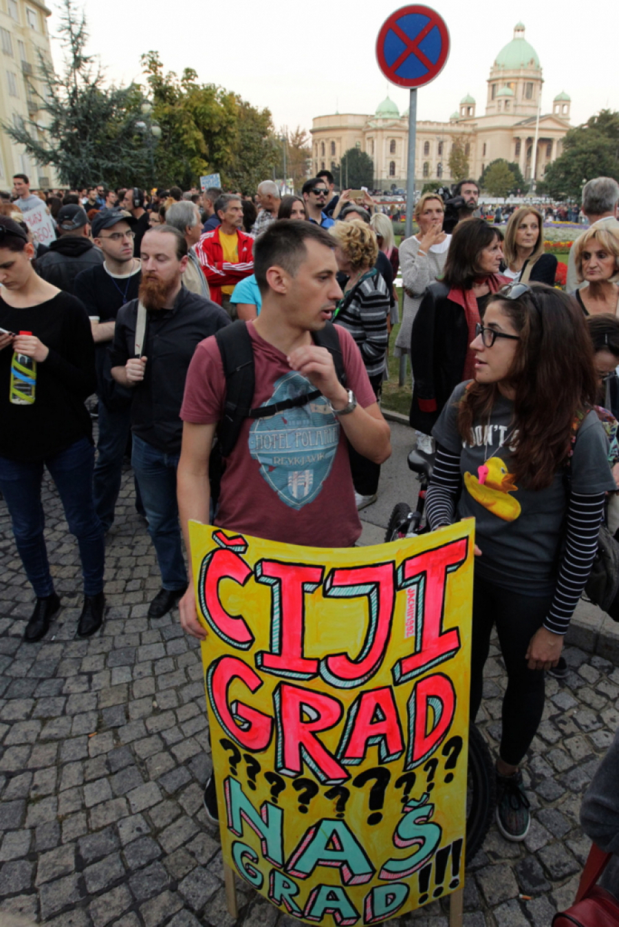 Radomir Lazović iz Inicijative rekao je da se "front širi i da je Beograd naš grad", kao i Novi Sad, Niš, Požega, Subotica, Mladenovac i drugi gradovi iz kojih su gradjani došli na protest.