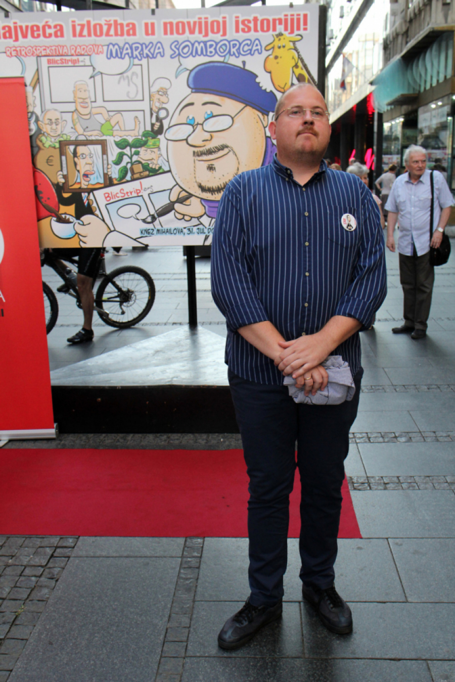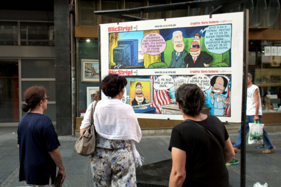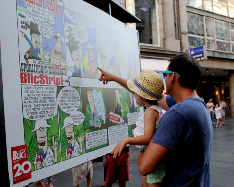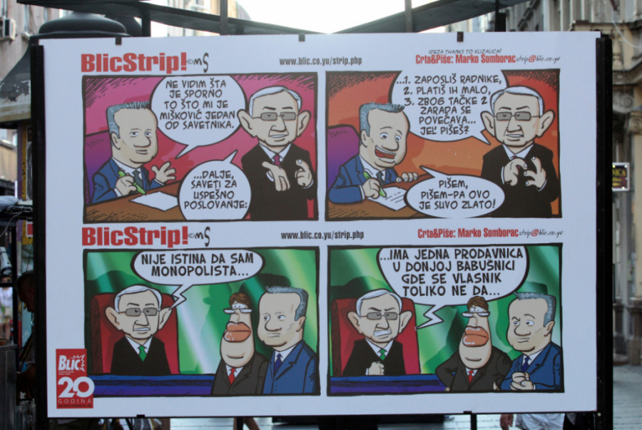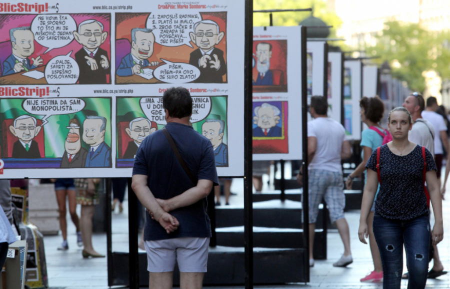 - Ovo najveća izložba u novijoj istoriji. Nisam imao ovakvu ni za vreme Tita, a u odnosu na prethodnu izložbu koju sam imao na Kalemegdanu, zabeležen je i rast od 33 odsto, jer je ona prethodna bila na 15, a da je ova sada postavljena na 20 panoa. Tu su svi ti događaji, Kosovo, Evropa, Hag, tajkuni i sad naš novi vrli vođa... - rekao je duhoviti Somborac pred okupljenima, zahvalivši se građanima na žrtvi, a izložbi u Progresu na reklami.
