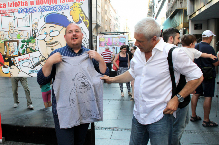 Prolaznici i brojini obožavatelji mogli su još jednom da se uvere u neverovatan talenat satiričara Marka Somborca, čiji crteži i najteži probleme stvarnosti pretvaraju u štivo za smeh do suza.