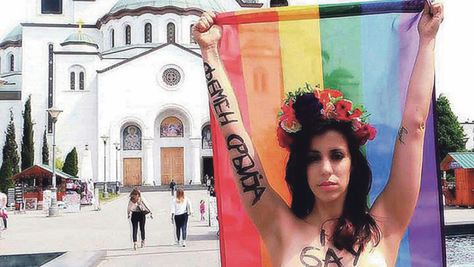 Globalni feministički pokret „Femen“ objavio je juče na društvenim mrežama fotografiju svoje aktivistkinje, koja se u znak podrške paradi u Beogradu slikala bez gornjeg dela sa zastavom duginih boja, a kako se navodi, „lokacija je izabrana kako bi se stalo na put nacionalistima, fašistima, huliganima i predstavnicima SPC koji krše ljudska prava i jednakost“, jer je, kako navode, Srbija jedna od najhomofobičnijih zemalja u Evropi.