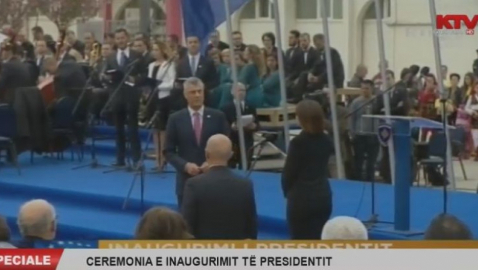 Hašim Tači je prvo sa svojom prethodnicom Atifete Jahjagom izvršio smotru počasne jedinice garde kosovskih bezbednosnih snaga, a ona mu je ona simbolično predala dužnost uručujući mu Ustav Kosova.