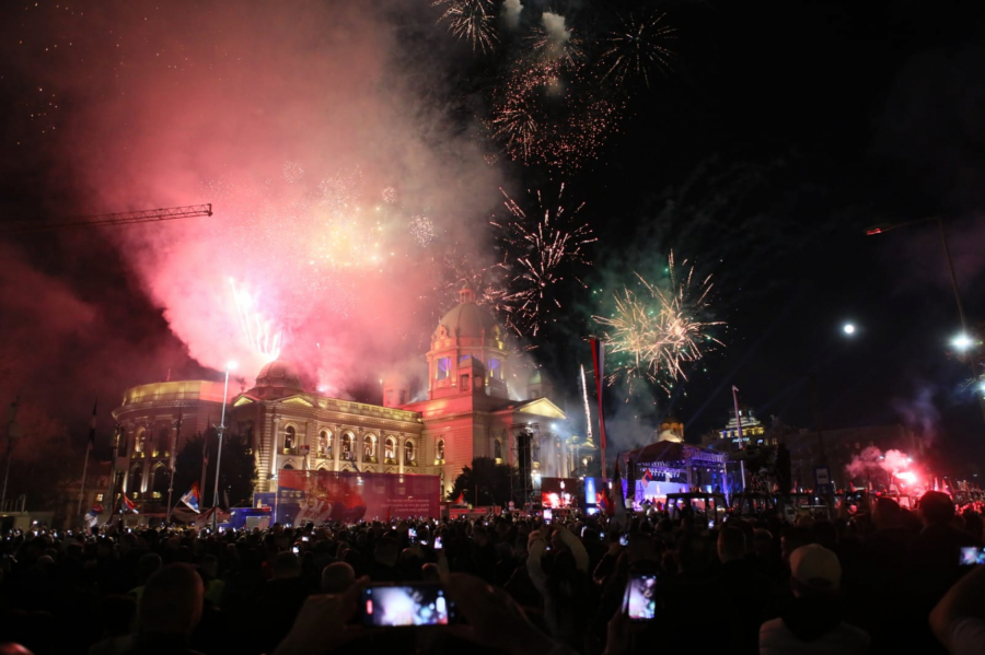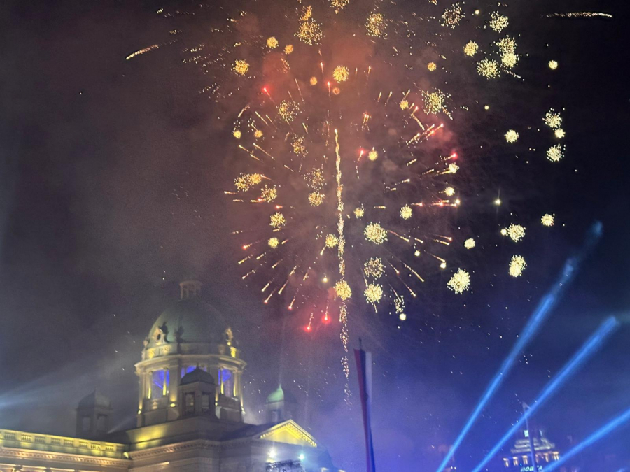 Na kraju govora predsednika Vučića, uz pesmu "Ovo je Srbija" započet je vatromet sa više lokacija, sa krova Narodne skupštine Srbije, zgrade Glavne pošte i drugih zgrada.