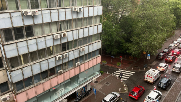 U Kosovskoj ulici, koja se nalazi u centru Beograda, kiša je počela blago da pada, stvarajući mokre kolovoze i otežavajući saobraćaj.