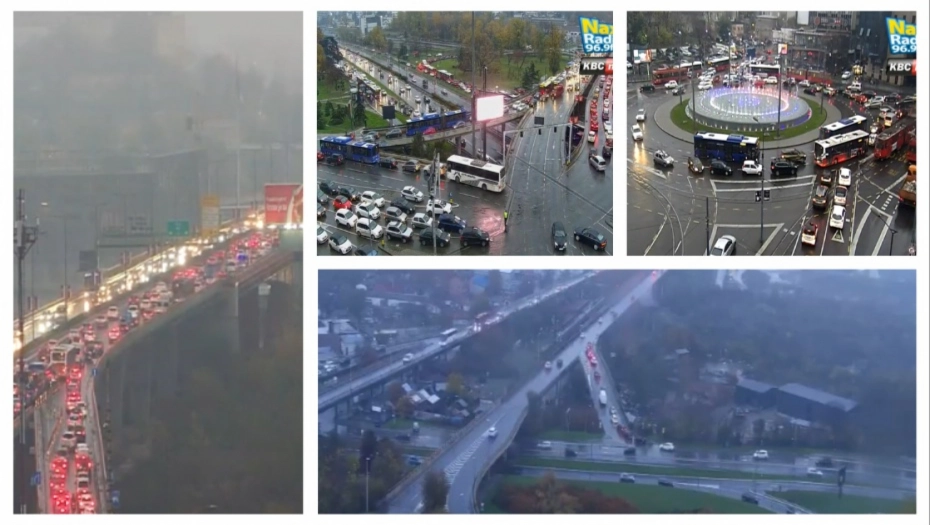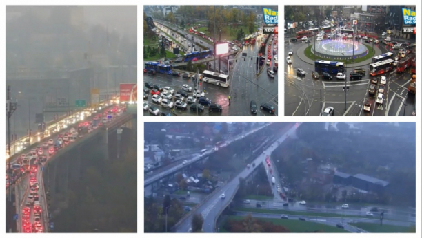 Pada i kiša, a ulice glavnog grada preplavljene su gužvama. što se može videti i na kamerama.