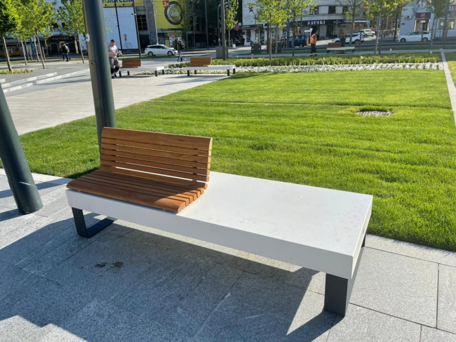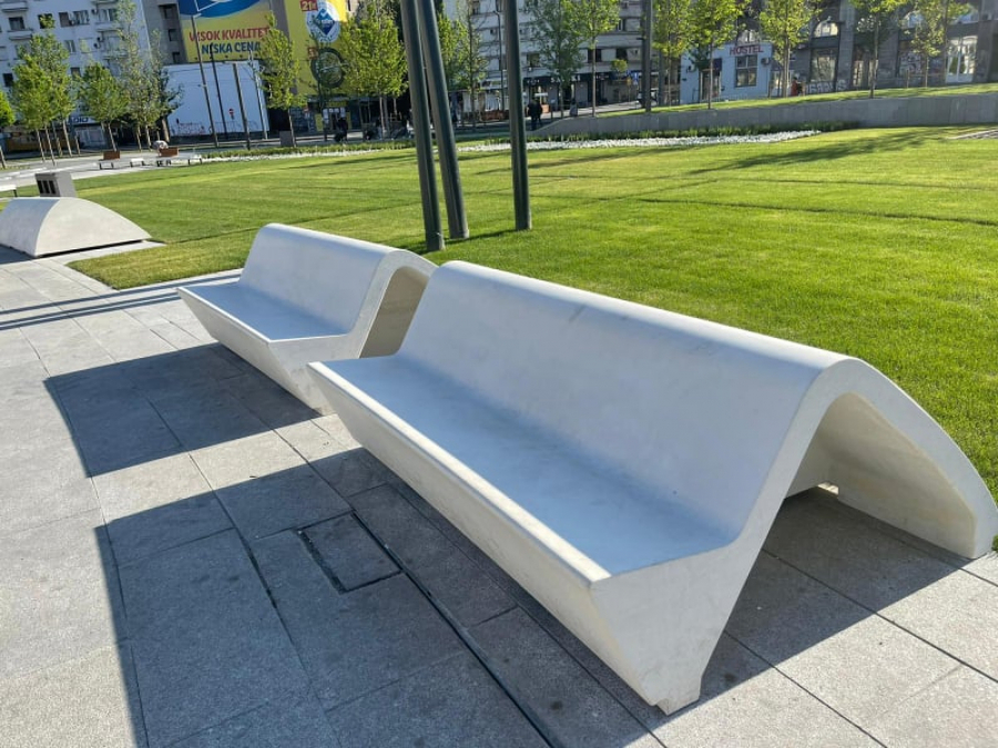 "Postavljamo četiri vrste 85 različitih klupa. 35 belih klupa od veštačkog mermera autorsko su delo srpskog vajara Bojana Krstića. Savski trg će biti prvi beogrdski trg koji će imati klupe na kojima će moći da se leži, odmara ili čita knjiga. Tu vrstu mobilijara imaju samo veliki trgovi i parkovi u najvećim svetskim metropolama", napisao je zamenik gradonačelnika Goran Vesić.