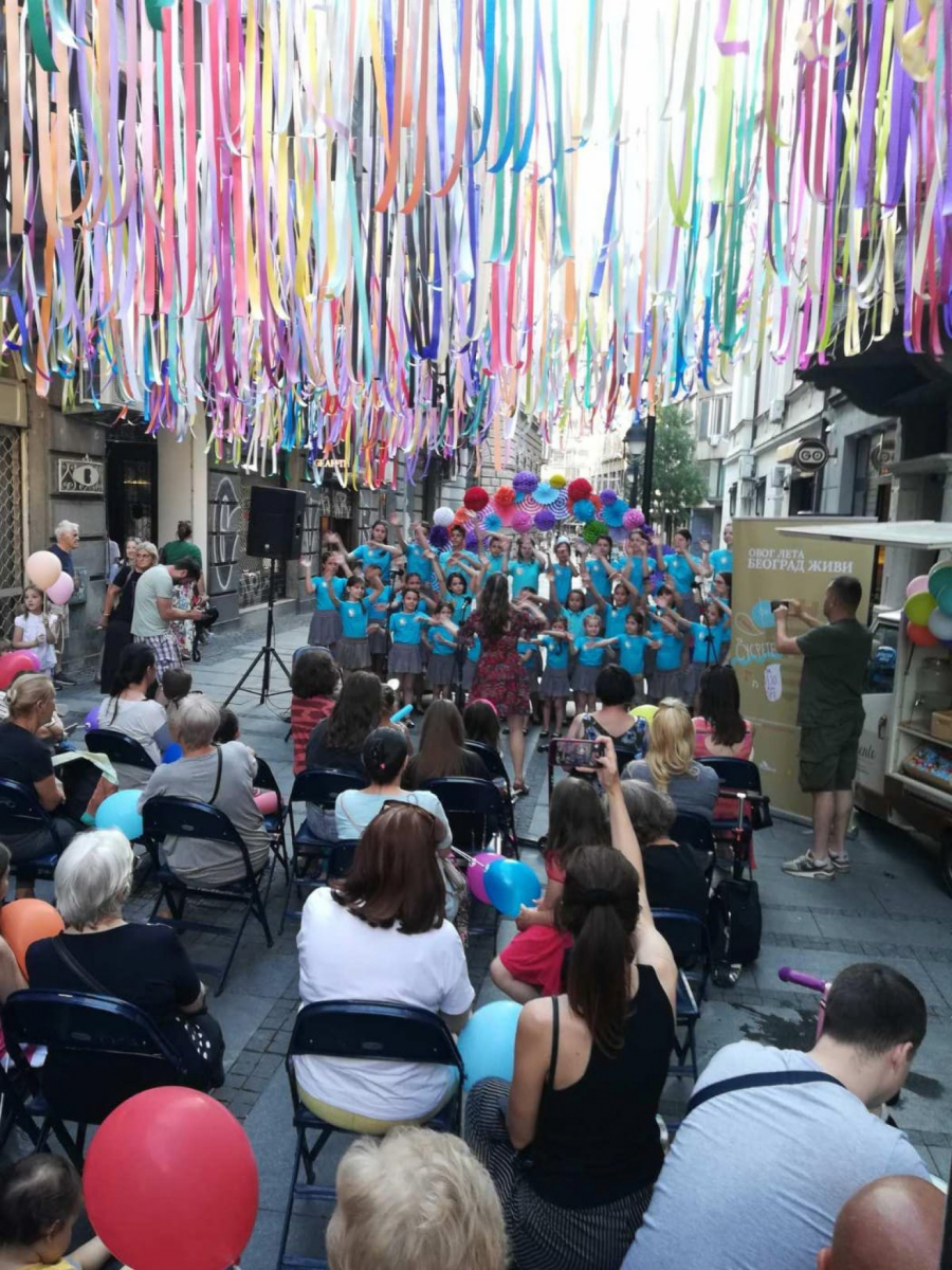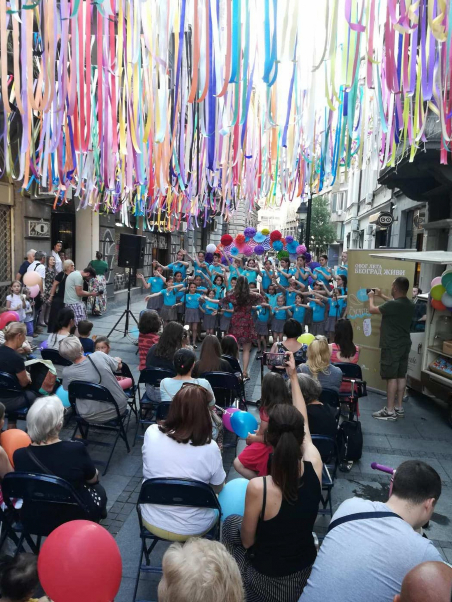 Radionice za decu školskog uzrasta biće organizovane na dve lokacije - Topličin venac - Park vojvode Vuka i Kalemegdan - plato ispred paviljona Cvijeta Zuzorić. Otvaranje Dečjeg kutka večeras je obeležio nastup hora Dečijeg kulturnog centra.