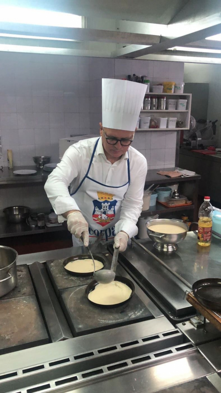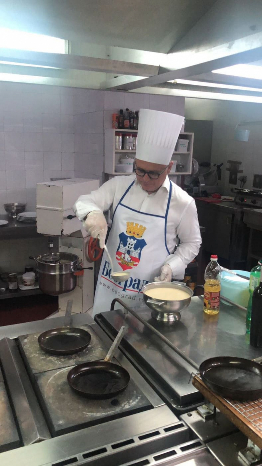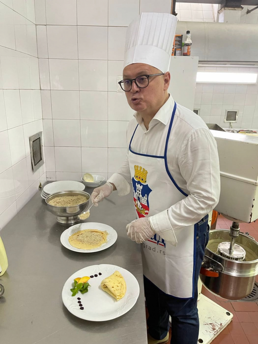 - Danas sam spremao čuvene palačinke u šatou, čiji recept naši kuvari ljubomorno čuvaju oko pola veka, od kada je tajnu donela iz Pariza u Beograd naša umetnica Olivera Katarina, otkrio je zamenik gradonačelnika u punoj kuvarskoj opremi.