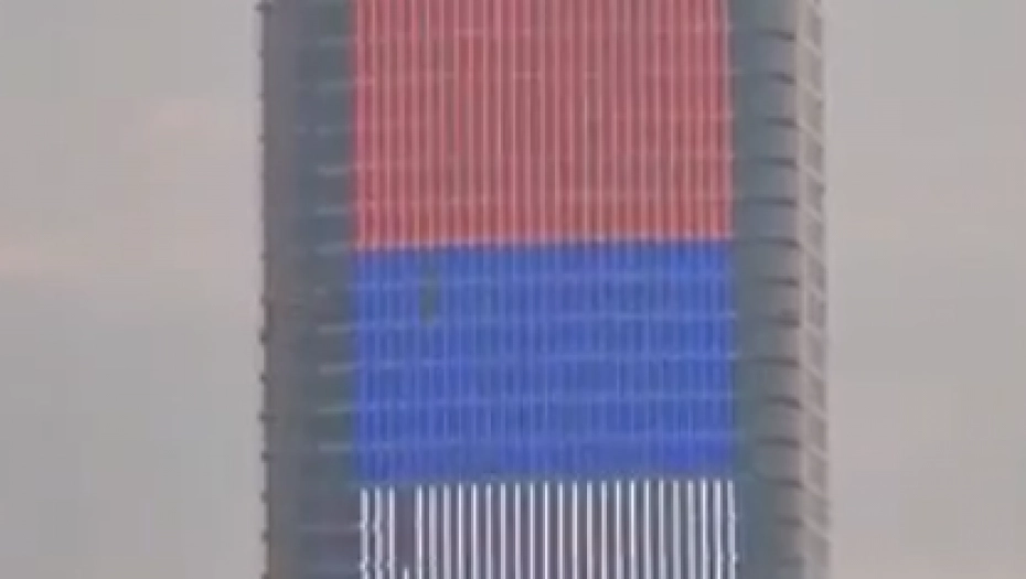 KULA BEOGRAD U BOJAMA SRPSKE ZASTAVE (VIDEO)