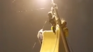 Ekipa JKP Javna rasveta upravo uklanja stub javne rasvete koji preti da padne na kolovoz pošto je grana pala na stub.