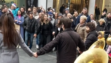 Građani su se u duhu prazničnog veselja odmah okupili i uhvatili da zaigraju kolo.
