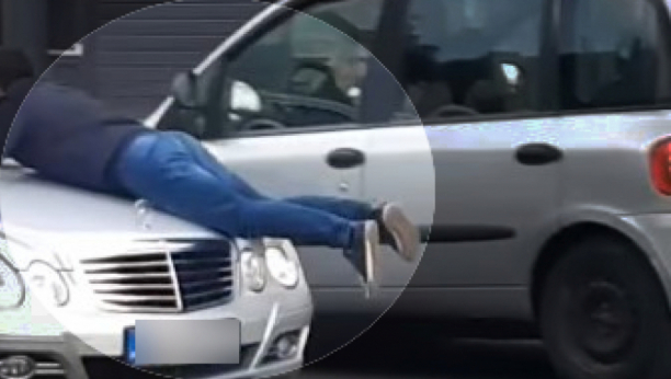 Taksistu to nije sprečilo da pokreno vozilo pa se mladić uskoro našao na haubi automobila, međutim, posle nekoliko metara ipak je sišao, a taksista je svirajući odjurio dalje.
