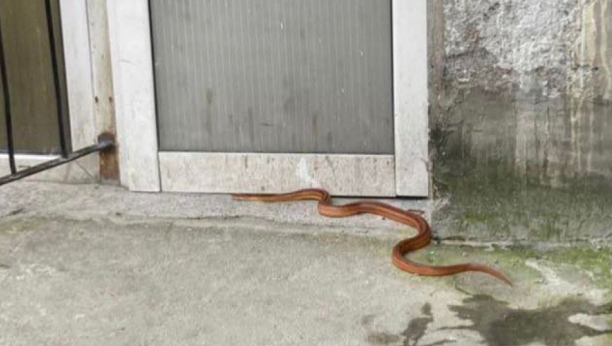 OGROMNA ZMIJA USLIKANA ISPRED OSNOVNE ŠKOLE U BEOGRADU Pobegla vlasniku iz stana