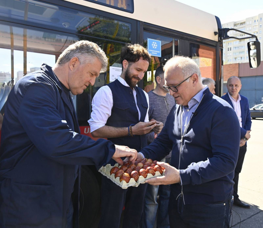 On je naveo da je u pogon JKP "GSP Beograd" na Novom Beogradu doneo uskršnja jaja koja su ofarbana u restoranu Skupštine grada.