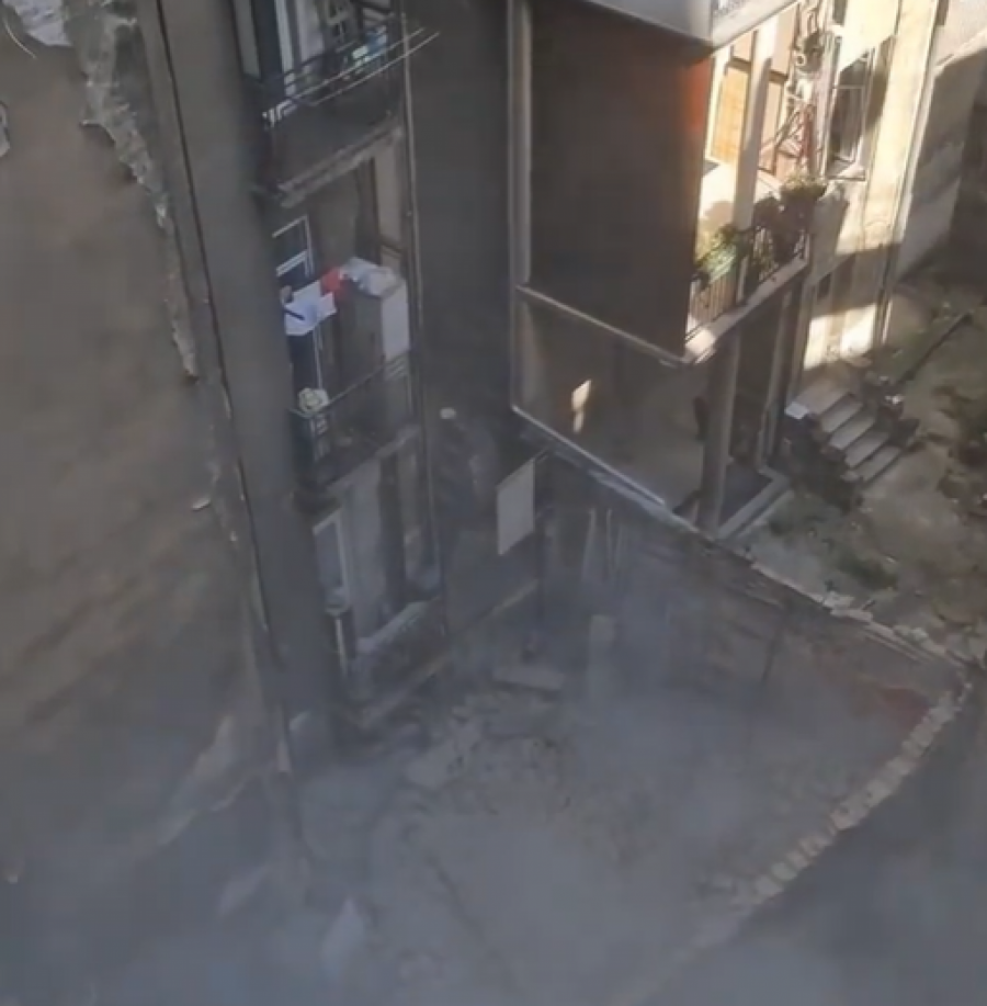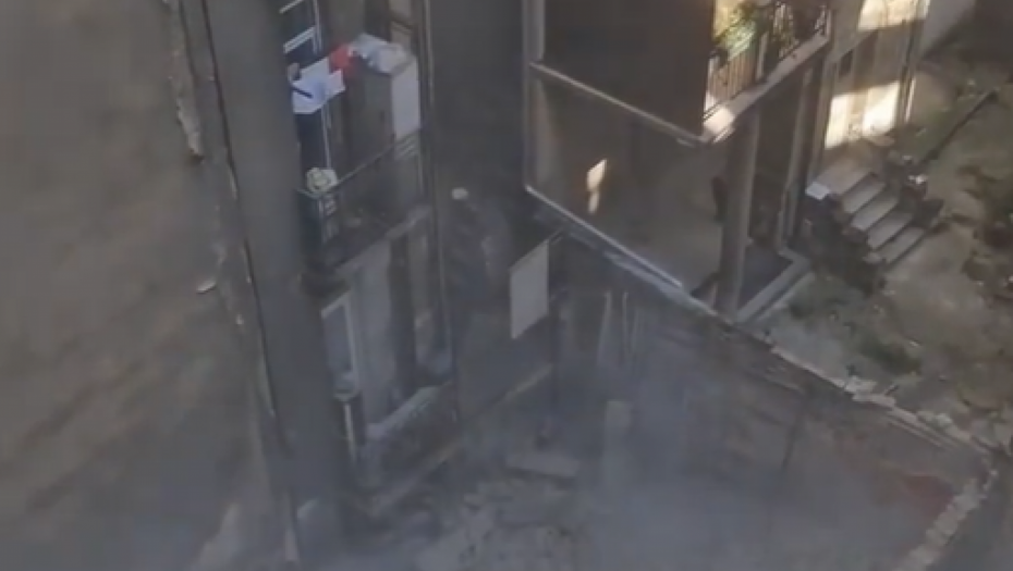 Povređenih samo pukom srećom nema jer je ogromna količina betona koja se obrušila na dvorište mogla da izazove tragediju.
