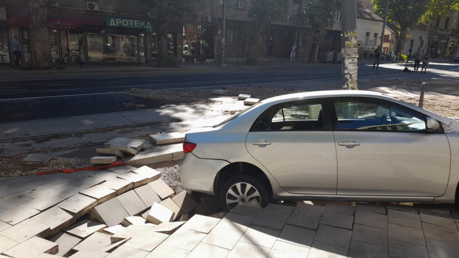 RUPE NA TROTOARU, POMERENI AUTOMOBILI Iza potopa u centru Beograda ostao haos (FOTO, VIDEO)