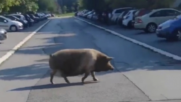 O čemu se radi? Blokom je prošetala poveća svinja, koja je očigledno pobegla iz nečijeg obora.