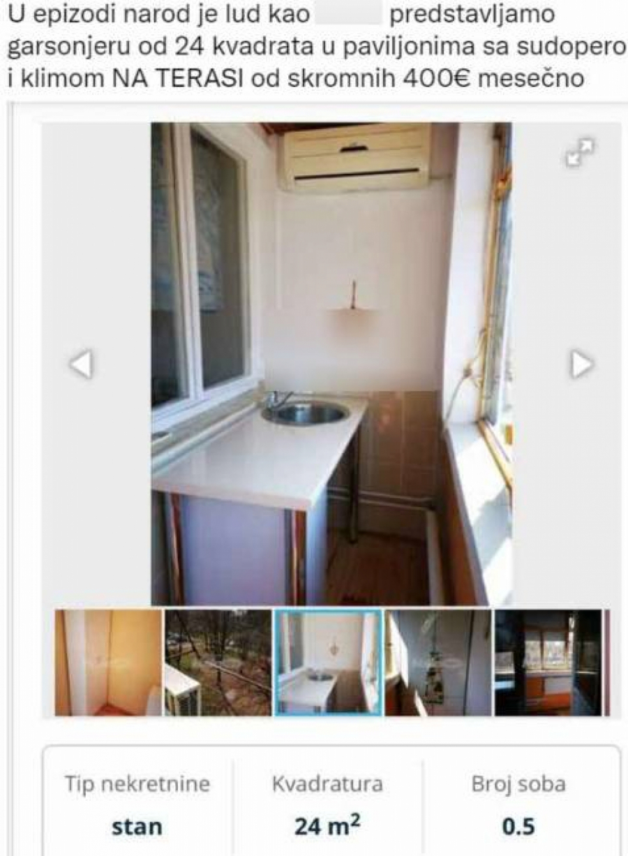 NAJLUĐI STANOVI ZA IZDAVANJE U BEOGRADU Gazda za 24 kvadrata sa sudoperom na terasi traži 400€ (FOTO)