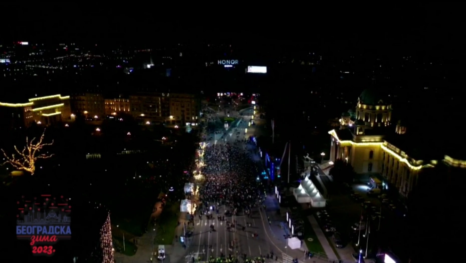 SVE JE SPREMNO ZA ISPRAĆAJ STARE GODINE Centar Beograda prepun ljudi, samo da krene odbrojavanje poslednjih sekundi