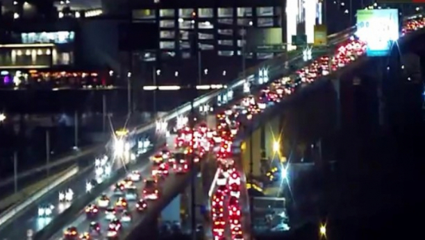 Velika kolona automobila zakrčila je i saobraćaj na autoputu na Novom Beogradu u smeru ka opštini Savski Venac.