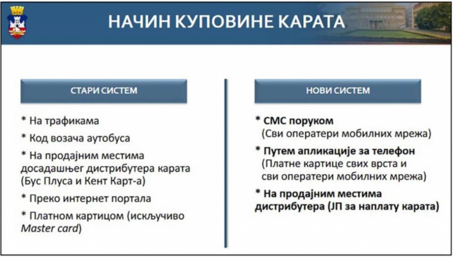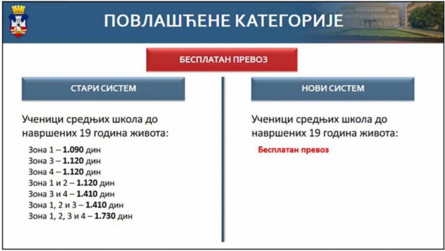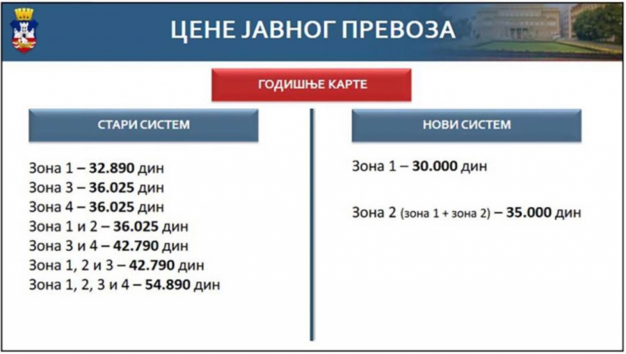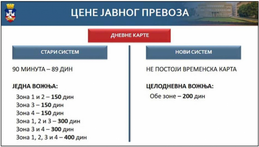 Jedna od promena jeste da više neće postojati četiri zone javnog prevoza i sedam tarifa. Postojaće dve zone i dve tarife. Druga promena jeste da neće biti vremenskih karata, već celodnevne koje će koštati 200 dinara za obe zone. Takođe se menjaju i višednevne karte.