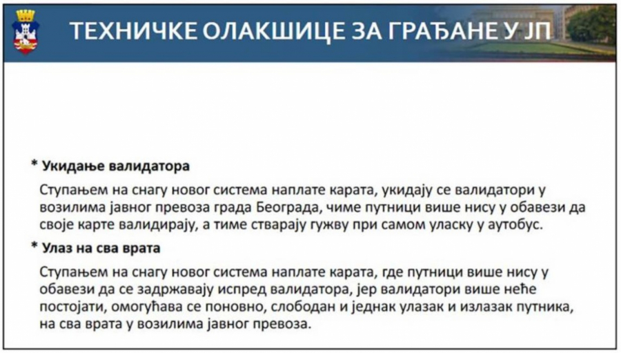 Validatori će biti ukinuti i putnici će moći da ulaze i izlaze na sva vrata.