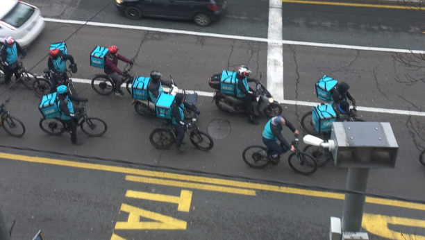 Na snimku možete videti kako je izgledao ovaj protest dostavljača kompanije "Wolt".