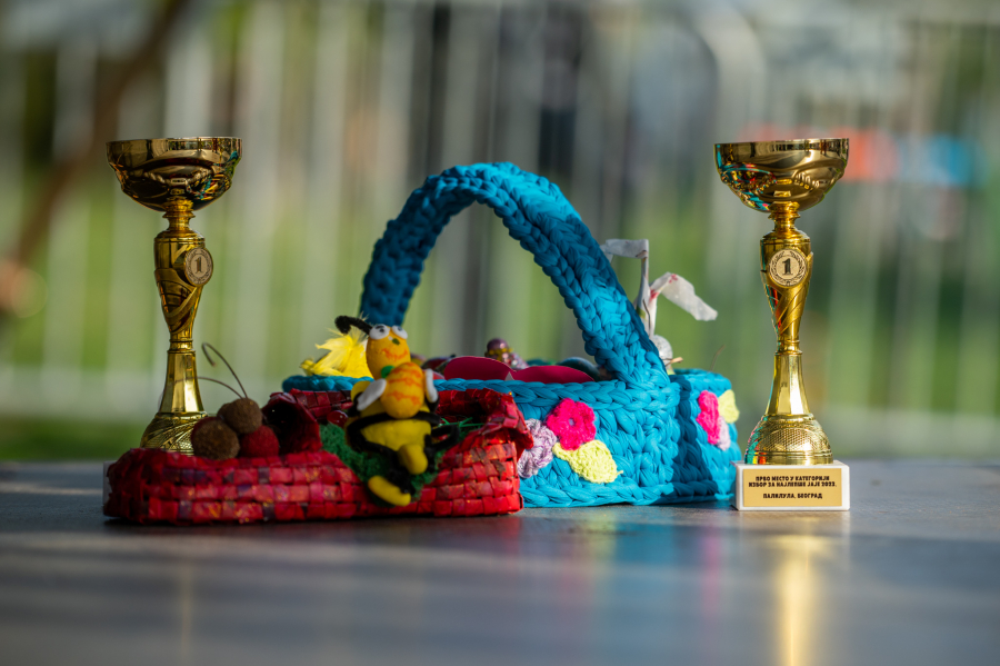 Jaje koje je proglašeno pobedničkim u parku Tašmajdan pripada OŠ “Zaga Mailivuk”, dok pobednička korpa dolazi iz OŠ “Jovan Ristić” iz Borče, dok je na Vračaru pobedu za najkreativnje oslikano jaje odnela OŠ “Kralj Petar II Karađorđević” (II2), a nagrada za najlepše dekorisanu uskršnju korpu pripala je OŠ “Svetozar Marković” (III3). Sva prikupljena sredstva od donacija biće namenjena nekom od socijalno ugroženih drugara iz školskih klupa u pomenutim školama koje su odnele pobedu na ovogodišnjem takmičenju.