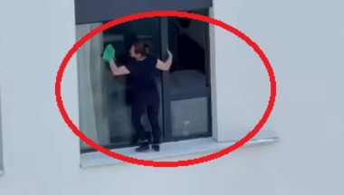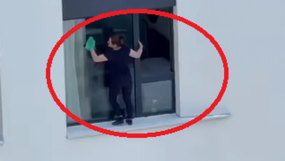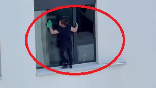 Na njemu se vidi žena koja čisti prozore na 11. spratu nebodera u Beogradu. Na jezivom snimku vidi se da ona stoji na ivici zida i samo se naslanja na njega!