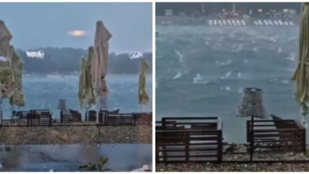Iz obližnjih kafića i restorana popadali su suncobrani i stolice, a ljudi su u čudu snimali prizore strašnog nevremena.