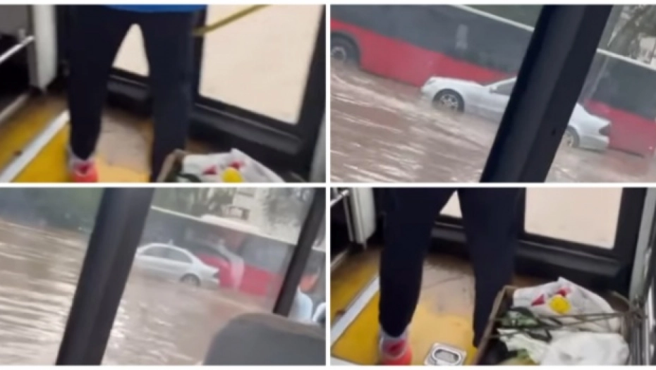 Na jednom od snimaka vidi se i kako voda prodire u sam autobus, a potom se može videti kako je pod potpuno poplavljen, te ljudi stoje u vodi, u nemogućnosti da izađu jer bi onda upali u dublju vodu koja teče ulicom, preneo je Kurir.