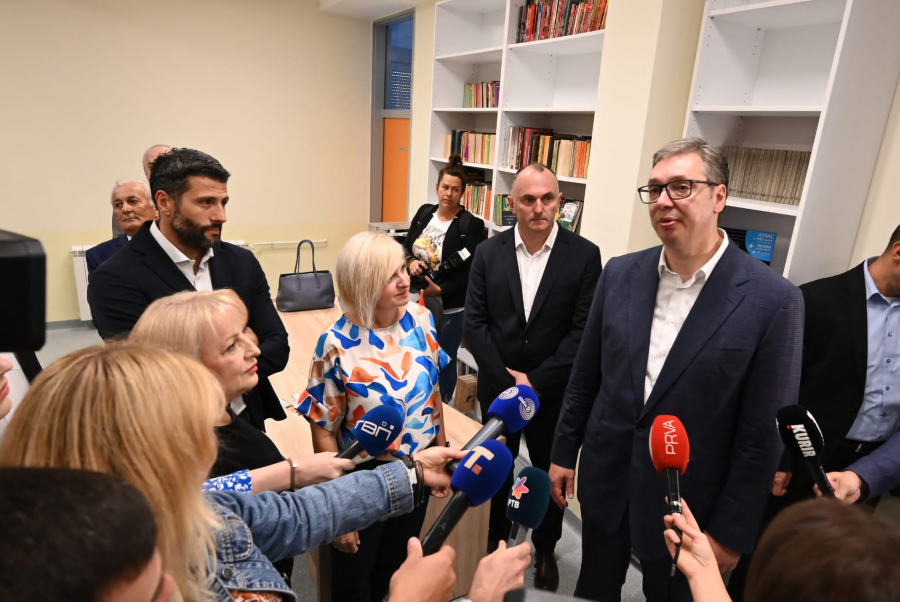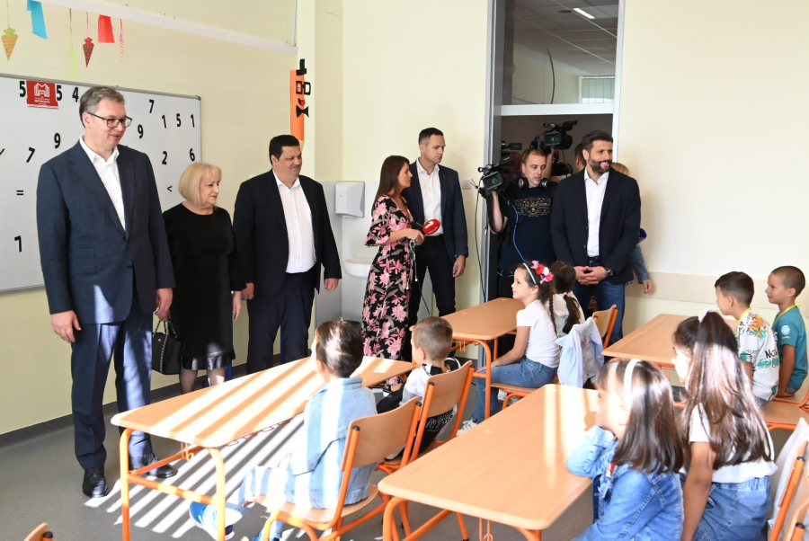 Posle svečane priredbe oni su obišli biblioteku i odeljenja prvih razreda, a predsednik Vučić je popričao sa njima i poželeo im uspešan početak školovanja uz savet da uče i budu vredni.