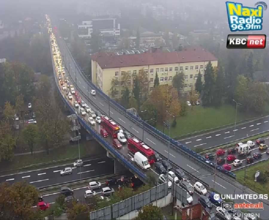Velika gužva i danas je u najprometnijim delovima grada. Na Gazeli se vozila pomeraju metar po metar, a dodatni problem pravi kiša i klizavi kolovozi.