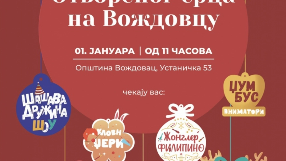 pozivamo vas na predivno druženje u okviru manifestacije ULICA OTVORENOG SRCA NA VOŽDOVCU koja se tradicionalno održava 1. Januara od 11:00 do 14:00 časova u Ustaničkoj ulici broj 53 (plato ispred Opštine Voždovac).